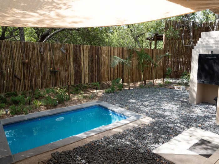An der Ausfahrt fahren Sie links Richtung Emakhazeni/Belfast (R540). Am Ende des Zentrums biegen Sie rechts ab Richtung Dullstroom/Lydenburg und fahren geradeaus über Dullstroom nach Lydenburg(Mashishing). Nach Lydenburg(Mashishing) nehmen Sie die R36 nach Ohrigstad und fahren durch den Abel Erasmus Tunnel in Richtung Hoedspruit (R527). Nach einiger Zeit erreichen Sie die Stadt Hoedspruit. Fahren Sie weiter geradeaus, bis Sie die Eisenbahnbrücke überqueren und eine 4-Wege-Haltestelle erreichen (rechts R40 White River, links R40 Phalaborwa). Hier biegen Sie rechts ab. An der nächsten Vier-Wege-Haltestelle biegen Sie links ab. Folgen Sie der Straße bis zum Ende (ca. 400 m) und Sie sehen direkt vor sich den Eingang zum Hoedspruit Wildlife Estate. Folgen Sie dem Schild mit der Aufschrift Besuchereingang (linke Seite). Man hat Sie über Ihre Ankunft informiert. Geben Sie Ihren Zugangscode an und teilen Sie mit, dass Sie Besucher der Braai Safaris Lodge Nummer 448 sind. Bitte halten Sie sich an die strikte Geschwindigkeitsbegrenzung von 40 km/h und halten Sie Ausschau nach Wildtieren, die die Straße überqueren könnten. Sobald Sie das Tor passiert haben, halten Sie sich links und folgen der Straße am Pferdestall vorbei und um die Kurve. Biegen Sie an der ersten Straße rechts ab (AKASIA) und nach etwa 50 m an der ersten Straße links (TAAIBOS).