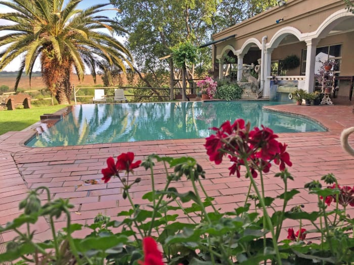 Situated on 23 hectares of rolling countryside in the tourism supply zone for the World Heritage Site, The Cradle of Humankind, Hills and Dales Accommodation is a relaxed, country and home style venue, catering for each individual guests requirements from peaceful getaways to conferences, parties, team building events and paintball in the natural terrain. Boasting beautiful gardens, lovely scenery and ambiance as well as abounding birdlife, the property is adjacent to the Lanseria Airport providing a peaceful getaway 40 minutes from the hustle and bustle of the environs of Johannesburg and Sandton.