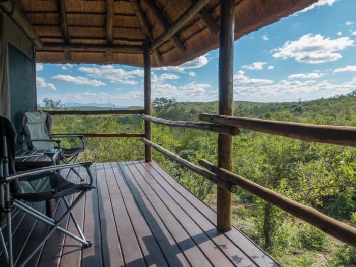 The positioning of the tented chalets gives a truly unusual sense of fusion with the bush, and an opportunity to sleep in close proximity to the wilds of Africa. Each chalet has a king-sized 4 poster bed, with full en-suite bathroom with bath and shower. Although the chalets are privately situated and close to the bush, they are accessed from the lodge and there is safe walking territory between the lodge and the chalets.