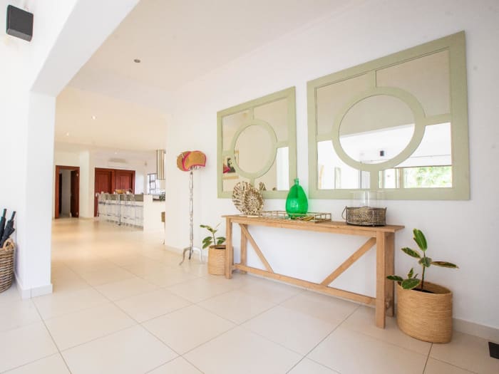 The deluxe self-catering villa is situated on a game farm, close to Brits and Hartbeespoort Dam. The tastefully furnished villa is set in tranquil surroundings where one can enjoy a relaxed time in the bush with an opportunity to view game in their natural environment. The villa can accommodate 12 guests and comprises five bedrooms, four of which are en-suite. The first bedroom contains a king-size bed, the second and third bedrooms each contain a double bed, the fourth bedroom contains a queen-size bed, and the fifth bedroom has two double beds. Both bath and shower facilities are available. The kitchen is equipped for self-catering, there are living rooms for relaxing, and a patio with a large dining table and chairs. The villa boasts a beautiful garden and a swimming pool. Breakfast is available subject to prior arrangement at an extra cost.