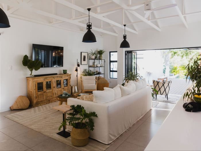 The rest of this beautiful establishment offers a communal lounge area with a fireplace and a TV, a kitchen and a large outside area with a garden, braai facilities and outdoor furniture. The kitchen is fully equipped with a microwave, gas stove, electric oven, fridge-freezer, dishwasher and washing machine and coffee machine. For convenience, a laundry service is available on request and daily housekeeping is available.